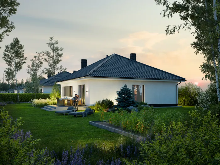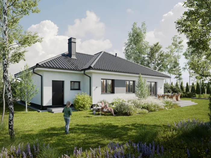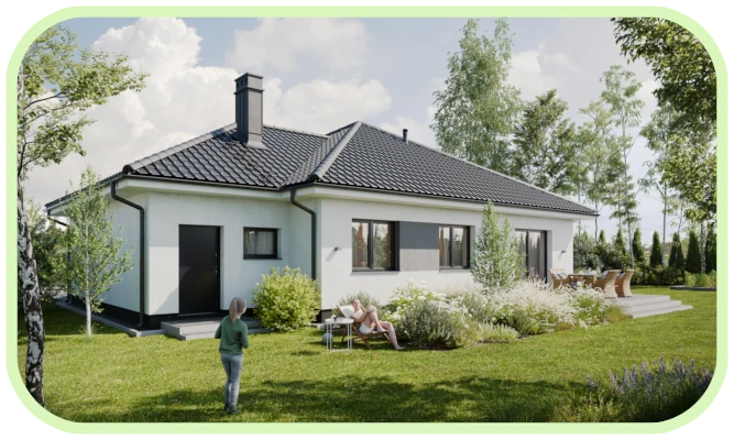 Domy zaprojektowane z myślą o komforcie i przyszłości. Parterowe domy jednorodzinne wyróżniają się nowoczesnymi rozwiązaniami technologicznymi. Ogrzewanie podłogowe, kocioł na pellet, wysokiej klasy trzyszybowe okna z ciepłym montażem oraz przygotowanie pod klimatyzację zapewniają komfort i energooszczędność przez cały rok.