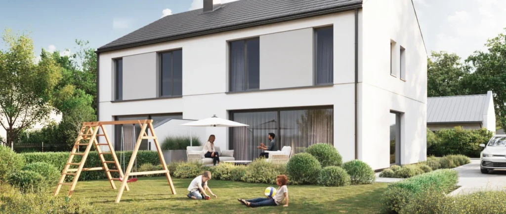 Dwa domy w zabudowie bliźniaczej w wersji premium, wykonane z najwyższej jakości materiałów. Każdy dom w stanie deweloperskim wyposażony w pompę ciepła Panasonic, rekuperację Awente, duże tarasy i ogrodzoną działkę. Komfort i funkcjonalność w każdym detalu.